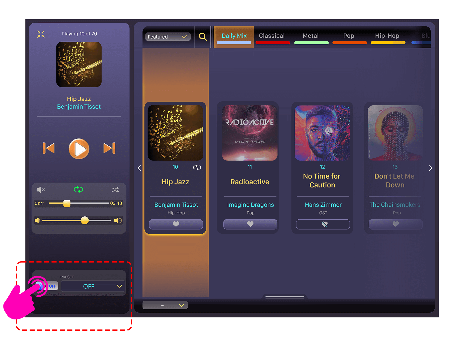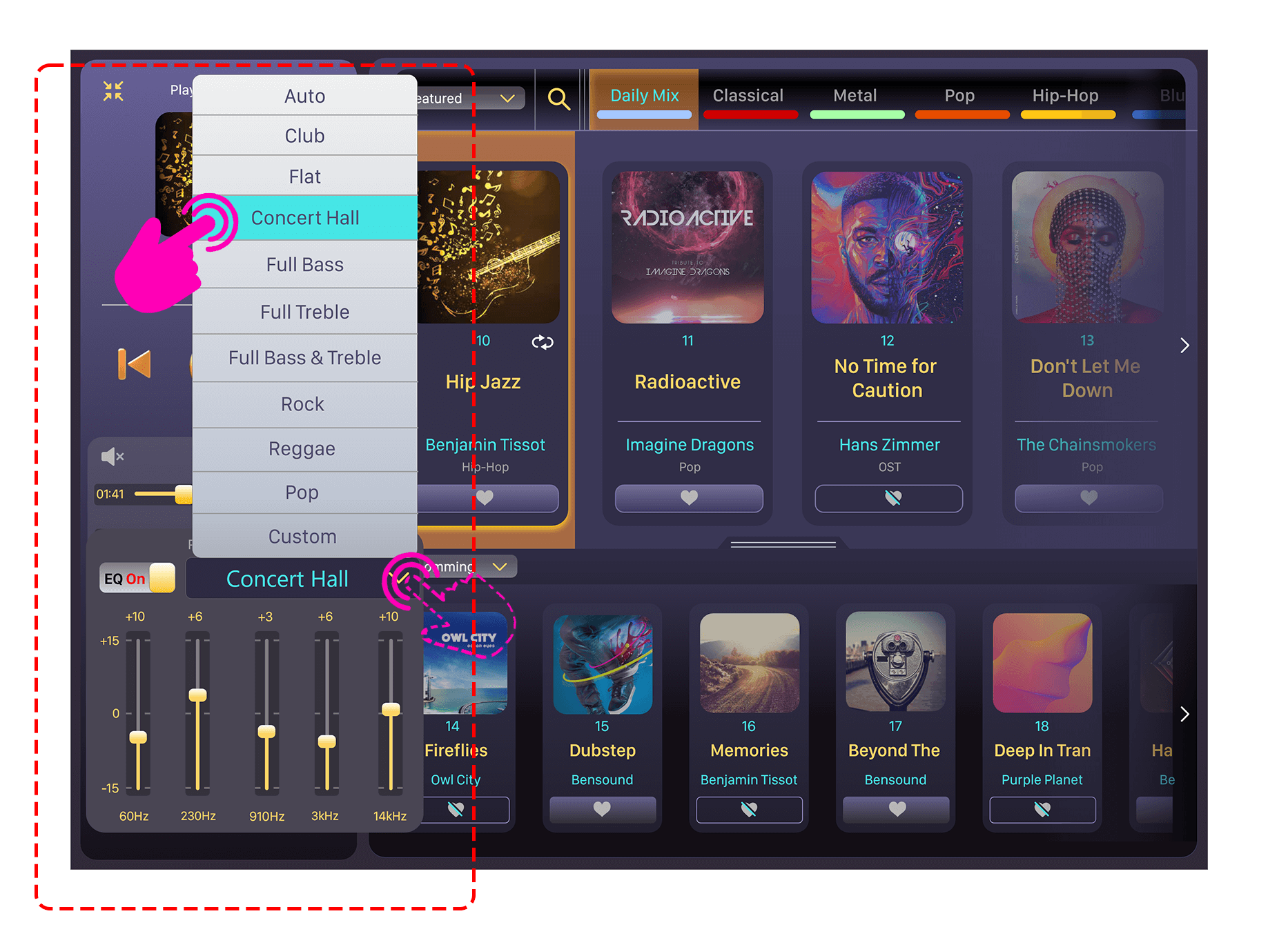 - The equalizer setting can only be viewed in a different panel and it’s a hassle to change it for different tracks I listen to.